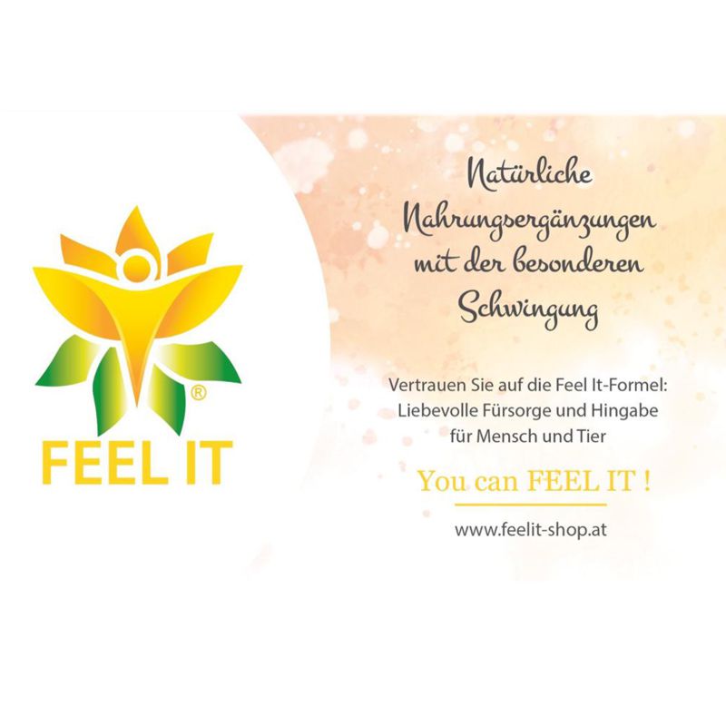 Everything we ingest or consume should vibrate well. That means from the production to the sale of the product, the Feel It formula applies: humanity and loving dedication in all matters. We listen to our therapists, patients and customers and can thus determine the optimal ratio of our products and thus continuously develop new and individually tailored food supplements.